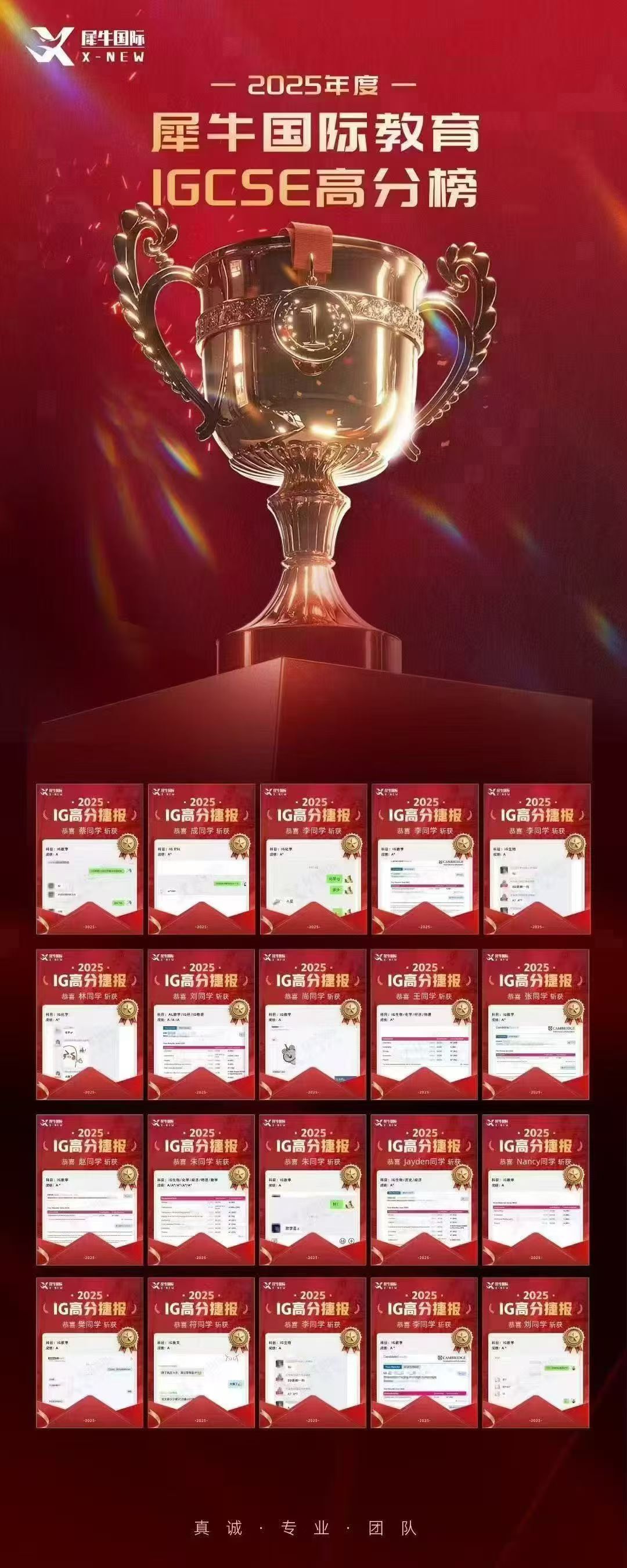 犀牛IGCSE培训课程有专业的服务团队,学员入班后,班主任老师实时跟进,反馈学情,和家长做好沟通和服务,深受家长好评。收获超多IGCSE高分