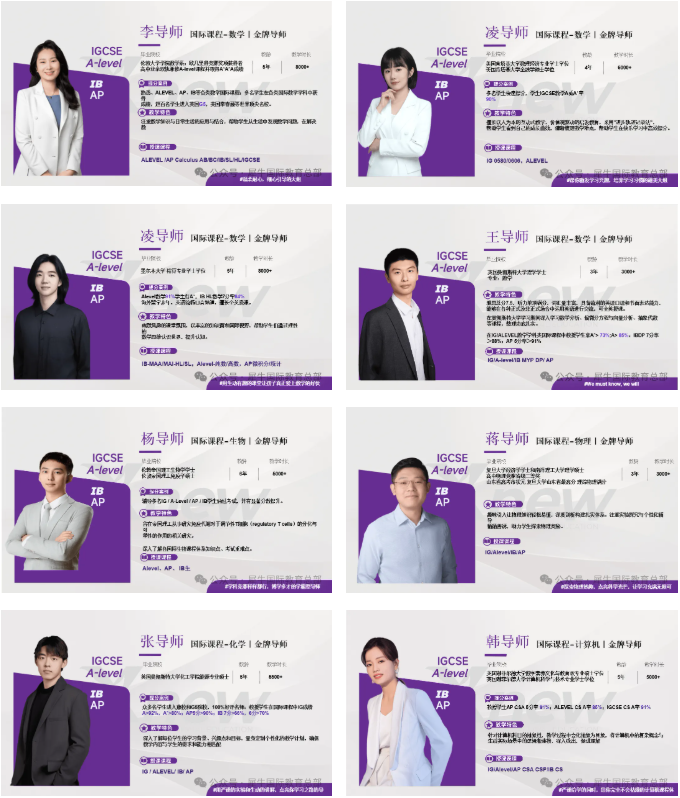 IB课程培训辅导老师:我们的老师均来自海内外名校,教学经验丰富,熟知IB课程考试重难点,帮助同学们强化提升,查漏补缺,在IB大考中取得好成绩!