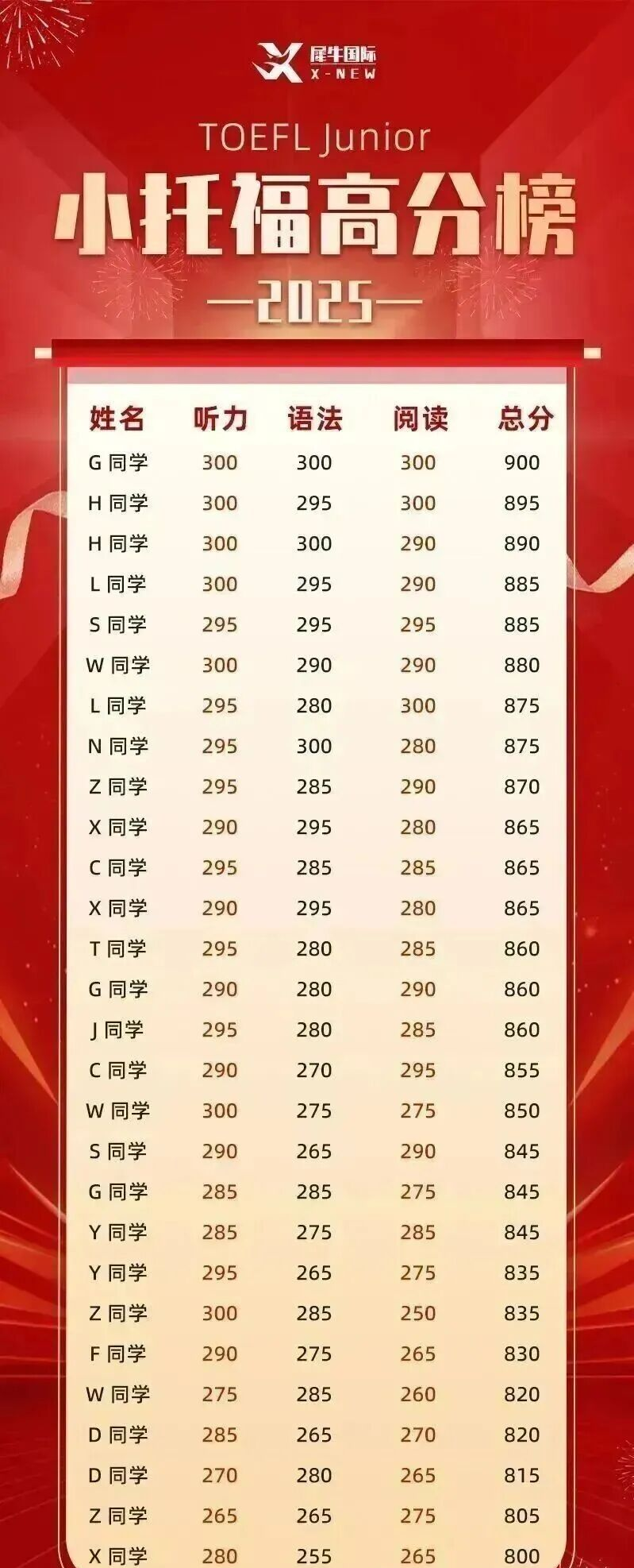 犀牛教育的小托福师资团队,深谙小托福的出题规律和命题陷阱,能够精准把握从800到850+的每一个提分关键点。老师们累计带出过上百位小托福850+的高分学员,这些孩子的成绩就是教学实力的最好证明。