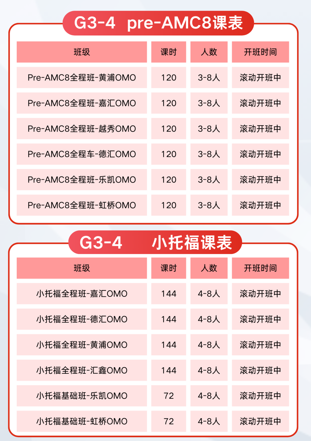 3-4年级:PreAMC8+ 科创 + 小托福基础/提升班