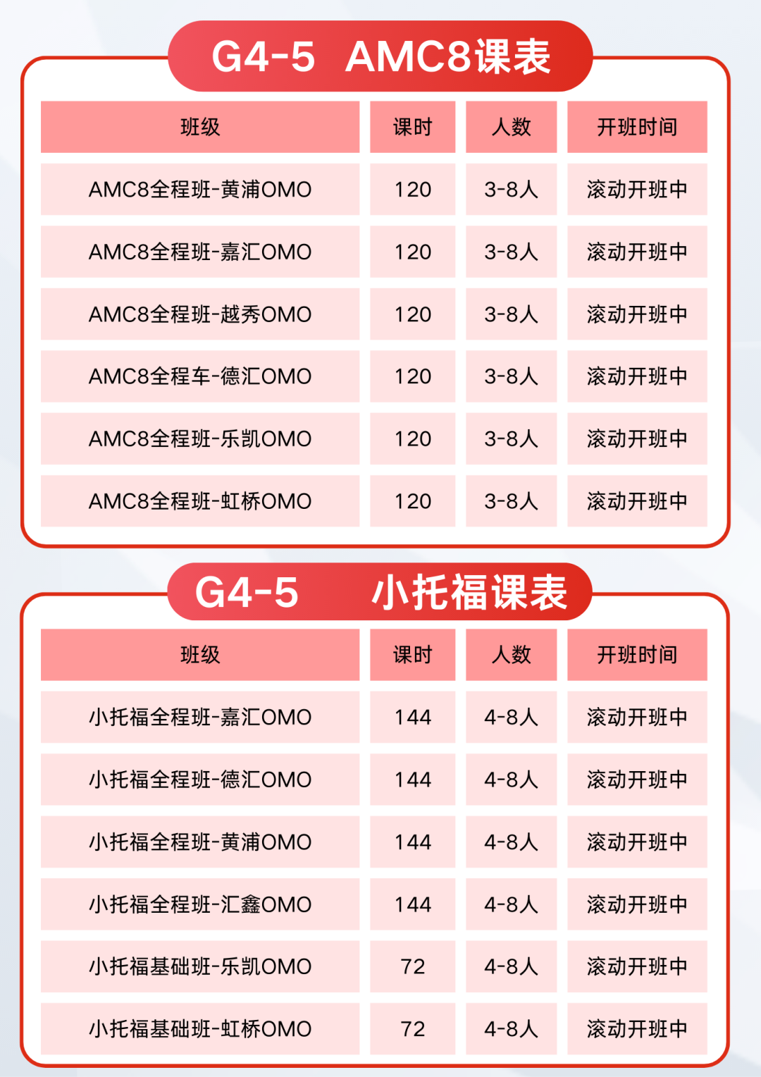 4-5年级:AMC8强化/冲刺 + 小托福强化/冲刺班