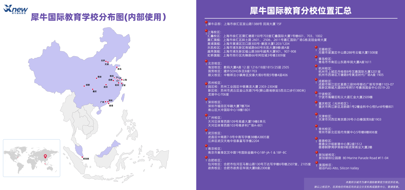 犀牛教育总部位于上海,目前已在全国布局30+线下校区: